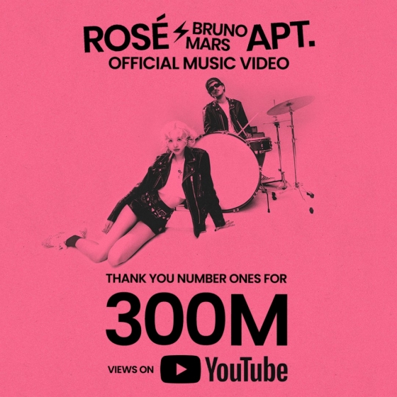 로제의 선공개 싱글 'APT.'(아파트)의 뮤직 비디오가 3억뷰를 돌파했다.