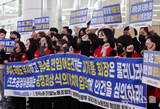 대한체육회노조는 전체회의가 개최되는 올림픽회관 13층 대회의실 앞에서 퇴진 요구 구호를 외쳤다. 뉴시스에 따르면 체육회 노조는 '정부도 국회도 무시하고 꼼수로 연임에 도전하는 이기흥 회장은 물러나라! 스포츠공정위원회는 공정과 상식의 가치에 입각해 안건을 심의하라'라는 플래카드를 들고 "체육인이 지켜본다. 사심 없이 공정하게 심의하라", "엄중하게 판단하라"고 거듭 외치기도 했다.