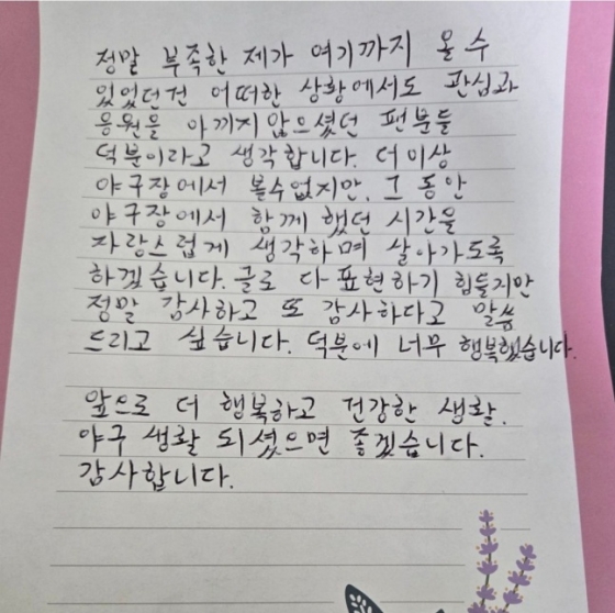 커리어 내내 꾸준한 기부와 선행으로 많은 이의 귀감이 됐던 '선행의 아이콘'은 마지막까지 감동을 안겼다. KBO 통산 1000경기 출장의 베테랑 신본기(35)가 직접 쓴 손 편지를 통해 자신의 은퇴를 알렸다.
