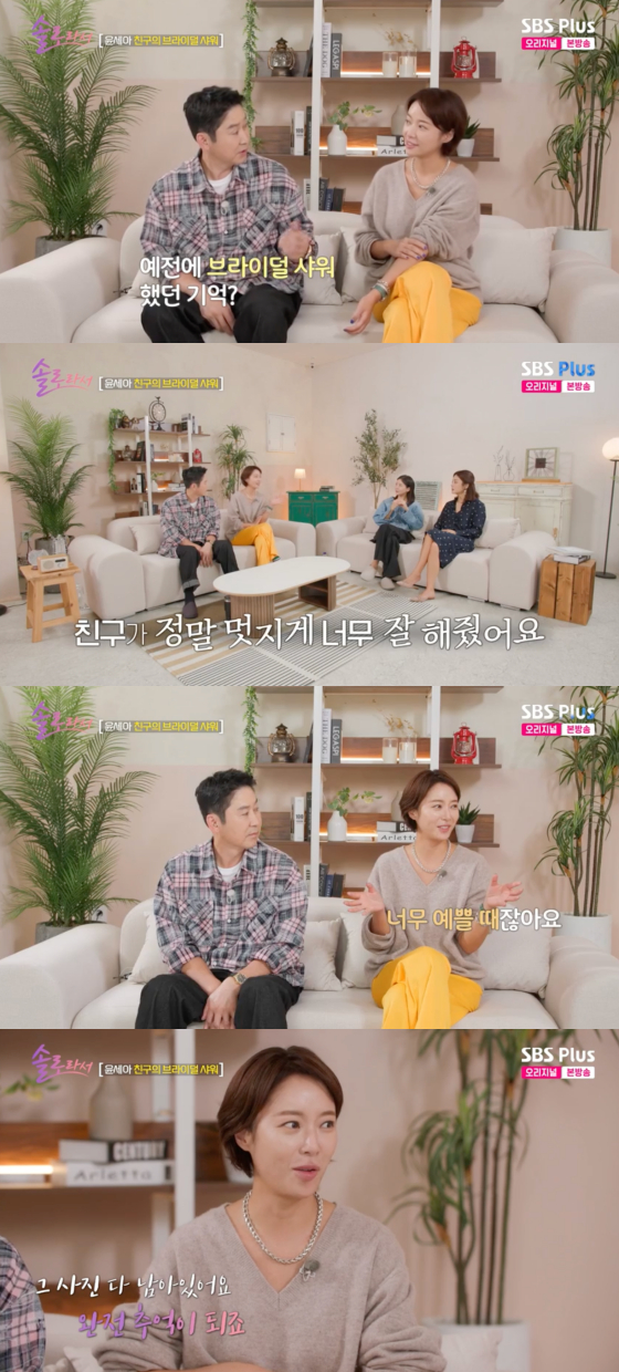 12일 방송된 SBS플러스, E채널 예능 프로그램 '솔로라서'에서는 배우 윤세아가 지인의 브라이덜 샤워를 준비하는 모습이 그려진 가운데 MC 황정음이 자신의 추억을 털어놨다.