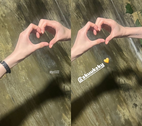 송혜교와 수지는 12일 각자 인스타그램에 손하트를 만든 사진을 공개하며 서로의 계정을 태그했다. 두 사람은 만남을 가진 뒤 같은 사진을 올리며 서로를 향한 애정을 표현했다.