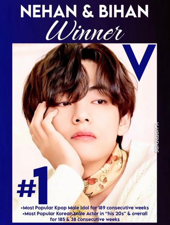 뷔는 같은 기간 한국 배우 인기 랭킹 사이트 '비한'(BIHAN)의 '배우 인기랭킹' 부문에서 38주 연속 1위, '20대 한국 배우' 부문에서 185주 연속 1위를 기록했다.