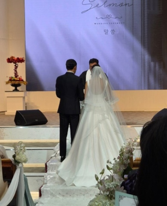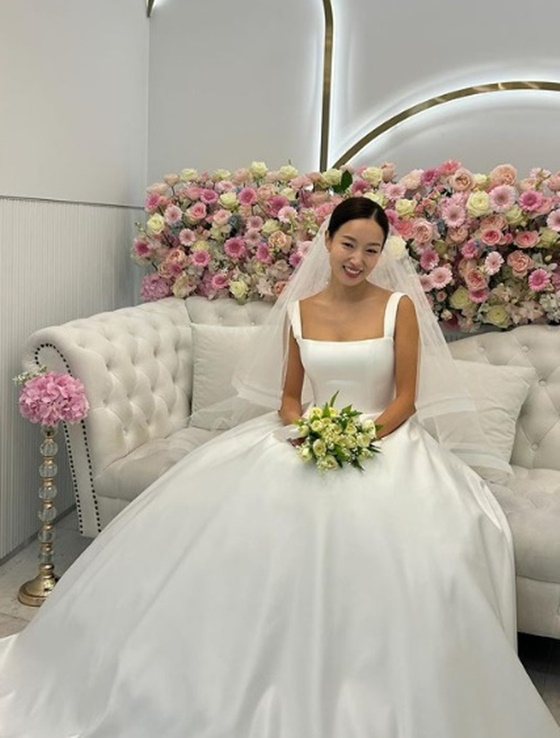 공개된 사진 속 김민경은 신부 대기실에서 순백의 드레스를 입고 환한 미소를 띠고 있다. 또 살짝 공개된 훈훈한 남편의 모습이 눈길을 끌었다.