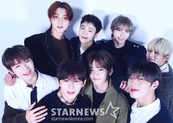 그룹 휘브(WHIB)가 데뷔 1주년을 맞아 서울 종로구 스타뉴스 사옥에서 진행된 인터뷰에 앞서 포즈를 취하고 있다.