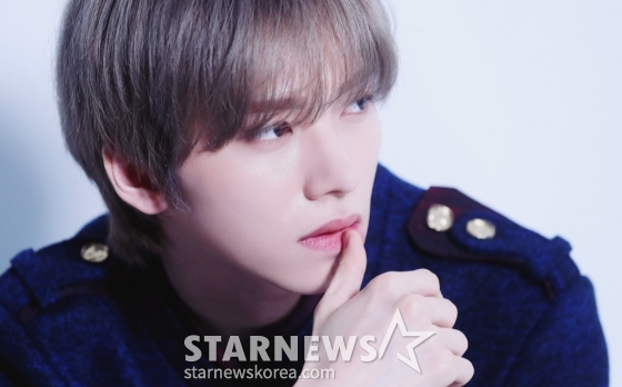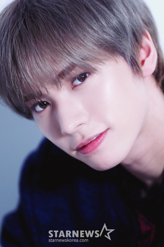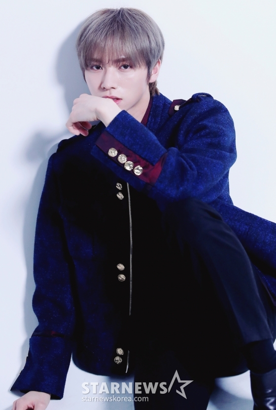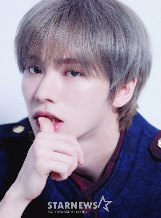 그룹 휘브(WHIB) 진범이 데뷔 1주년을 맞아 서울 종로구 스타뉴스 사옥에서 진행된 인터뷰에 앞서 포즈를 취하고 있다.