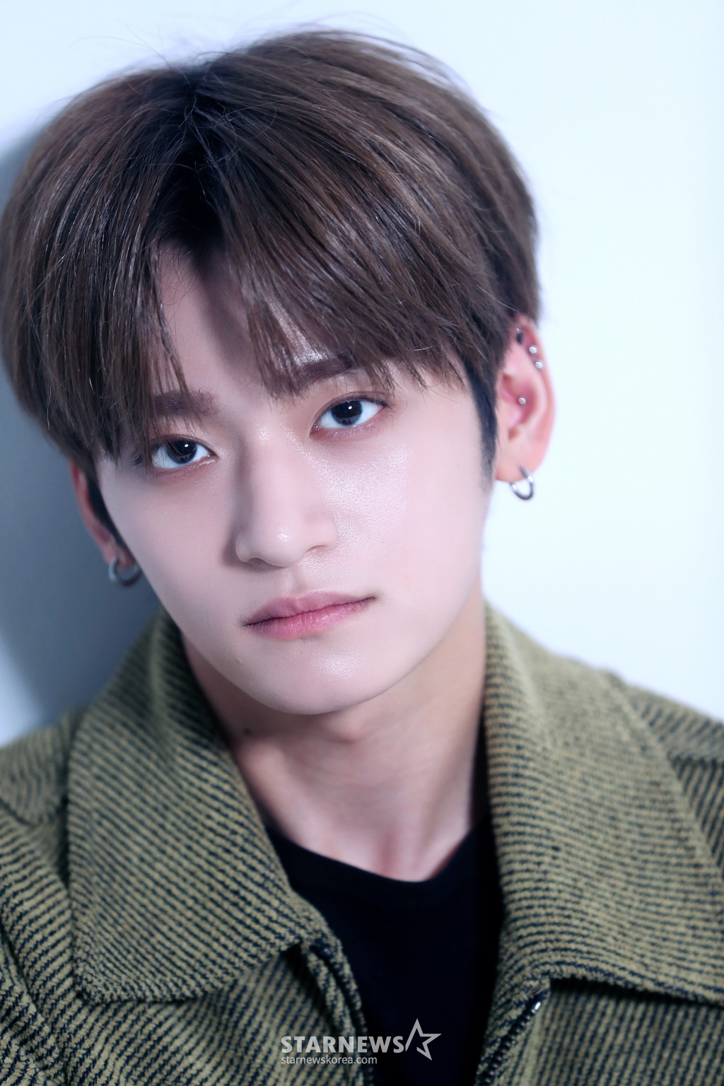 그룹 휘브(WHIB) 재하가 데뷔 1주년을 맞아 서울 종로구 스타뉴스 사옥에서 진행된 인터뷰에 앞서 포즈를 취하고 있다.