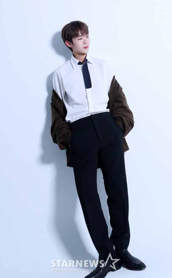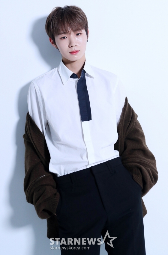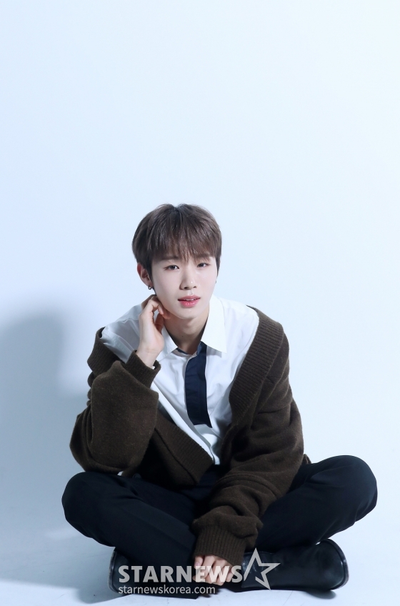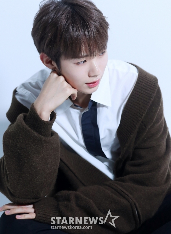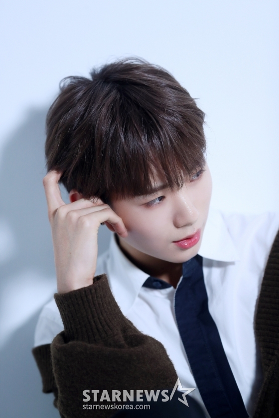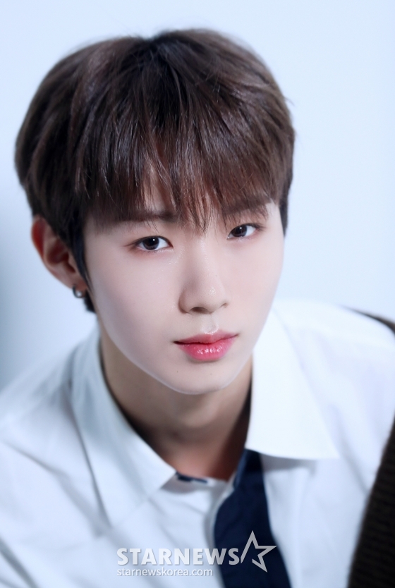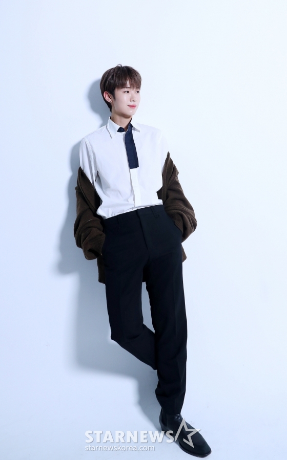 그룹 휘브(WHIB) 원준이 데뷔 1주년을 맞아 서울 종로구 스타뉴스 사옥에서 진행된 인터뷰에 앞서 포즈를 취하고 있다.