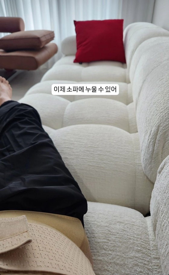 이내 여유를 되찾곤 소파에 두 다리 쭉 뻗고 누운 모습을 공개, "이제 소파에 누울 수 있어"라며 한숨 돌렸다.