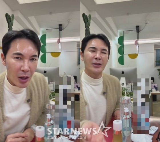 김우리는 20일 자신의 인스타그램 라이브를 통해 산양유 공구 방송을 진행하고 있다.