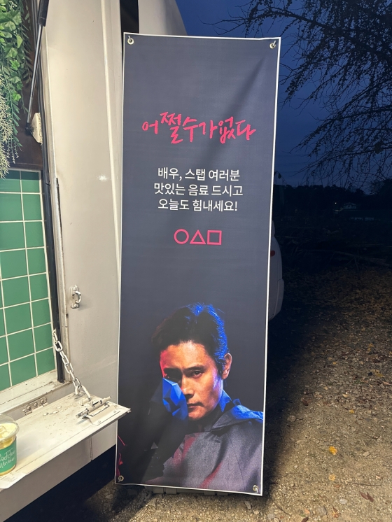 공개된 사진에는 영화 '어쩔수가 없다' 촬영 현장에 황동혁 감독이 선물한 커피차의 모습이 담겼다. 특히 커피차에는 "이병헌 배우님과 영화 '어쩔수가 없다'를 응원합니다"라는 문구와 함께 넷플릭스 시리즈 '오징어 게임'에서 이병헌이 맡은 프론트맨의 모습도 담겨 눈길을 끌었다.