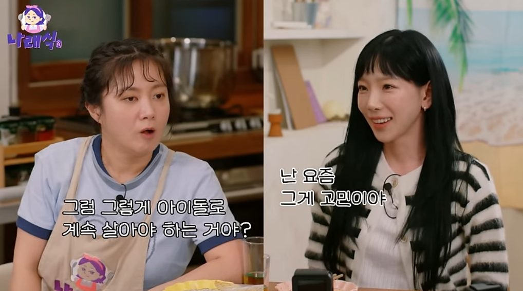 이에 태연은 "근데 알지 않나. 나 약간 구수하다"라고 반응했고 박나래도 이를 인정하며 "솔직히 말하면 너무 허술하고 문턱이 낮다"라고 답했다.