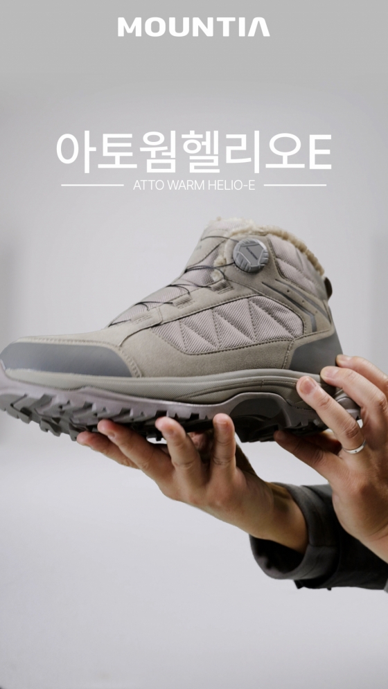 신제품 '아토웜 방한화'는 마운티아의 아토쉘(ATTO SHELL) 원단을 신발 갑피에 활용해 방수와 방풍, 투습 기능이 뛰어난 점이 특징이다. 이와 함께 미드솔에는 경량성과 쿠셔닝이 뛰어난 파일론 소재를 적용해 지면으로부터 오는 충격을 흡수해 발에 가해지는 부담을 줄여준다.