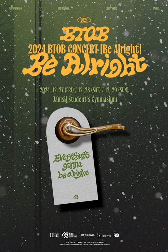 소속사 비투비 컴퍼니는 21일 오후 2시 공식 SNS를 통해 '2024 비투비 콘서트 '비올라잇'(2024 BTOB CONCERT 'Be Alright')'(이하 '비올라잇') 포스터를 공개하고 공연 개최 소식을 알렸다.