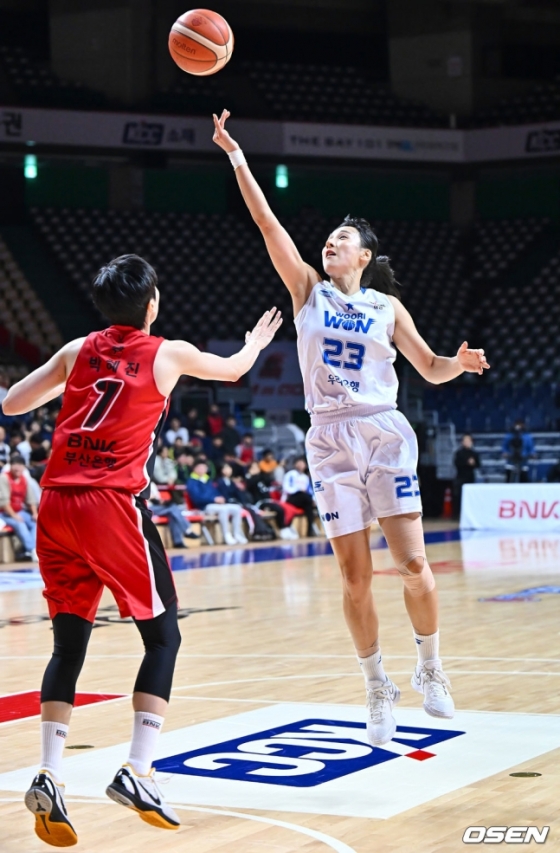 우리은행은 21일 오후 7시 부산 사직실내체육관에서 열린 BNK와 하나은행 2024~2025 여자프로농구 2라운드 원정경기에서 68-66으로 승리했다.