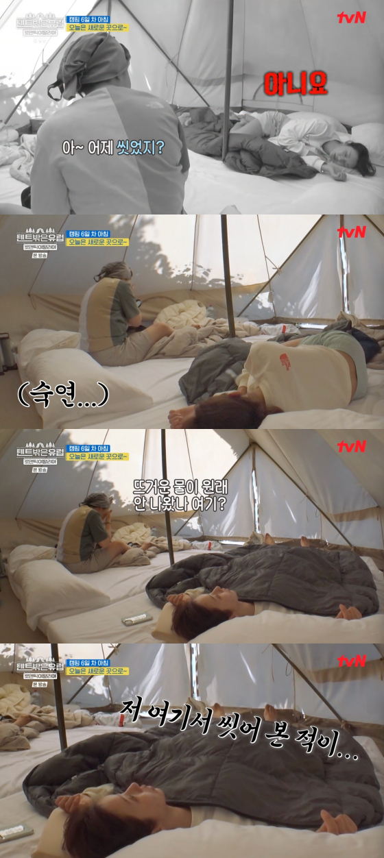 라미란 대답을 들은 이주빈은 다시 이불 위에 누우며 "씻을까 말까"라며 갈등했다.