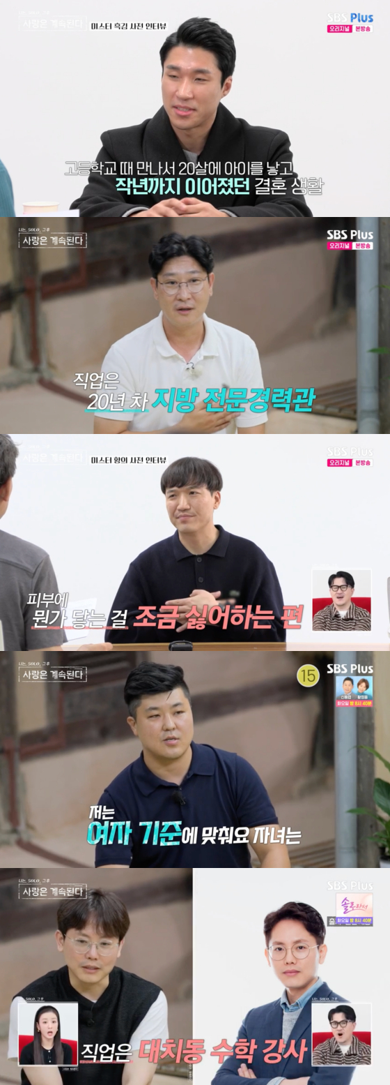 미스터 박은 "나이는 42세고 직업은 대치동 수학 강사"라며 "아이는 7살 된 딸이 있는데 전 아내가 양육 중이다. 아이를 너무 좋아해서 시간만 나면 딸을 보러 간다. 서로 양육권을 원해서 이혼 재판이 길어졌다. 짧은 교제 끝에 아이가 생겨서 결혼하니까 안 맞는 부분이 있었다"고 자신에 대해 설명했다.