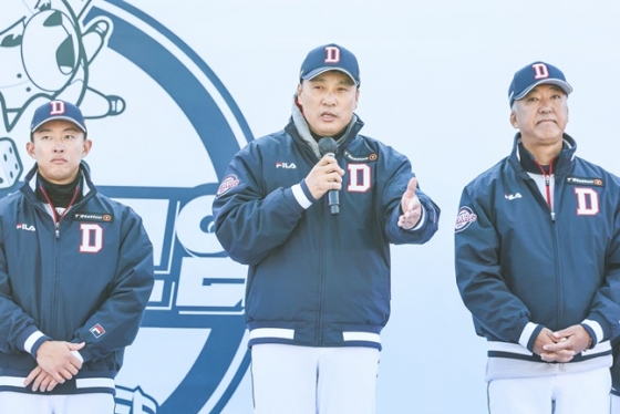 긴 시간 팬 사인회가 이어졌고 오후 1시부터 시작된 본 행사에서 가장 먼저 진행된 건 코칭스태프의 인사였다. 이승엽 감독은 "올 시즌이 허무하게 빨리 마무리됐다. 2년간 가을야구를 통해 많은 것을 느끼고 2025년은 어떻게 할 것인가 많은 이야기를 나눴다"며 "2025년엔 10개 구단 중 가장 늦게까지 야구할 수 있도록 준비하고 있다. 야구에는 약속의 8회라는 말이 있지만 '약속의 2025년' 두산 베어스가 될 수 있도록 노력하겠다"고 자신했다.