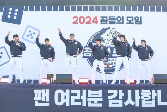 이어 새로운 주장 양의지(37)가 팬들에게 인사하는 자리를 가졌다. "올해 많은 책임감을 느낀다"며 2024시즌 주장 양석환에게 박수를 보내달라고 요청했다. "김재호 선수가 은퇴하며 최고참이 됐는데 열심히 해보겠다. 팬들이 원하시는 건 승리이니 더 많은 승리와 더 좋은 성적으로 곰들의 모임에서 만나 뵙고 싶다. 열심히 하겠다"고 말했다.