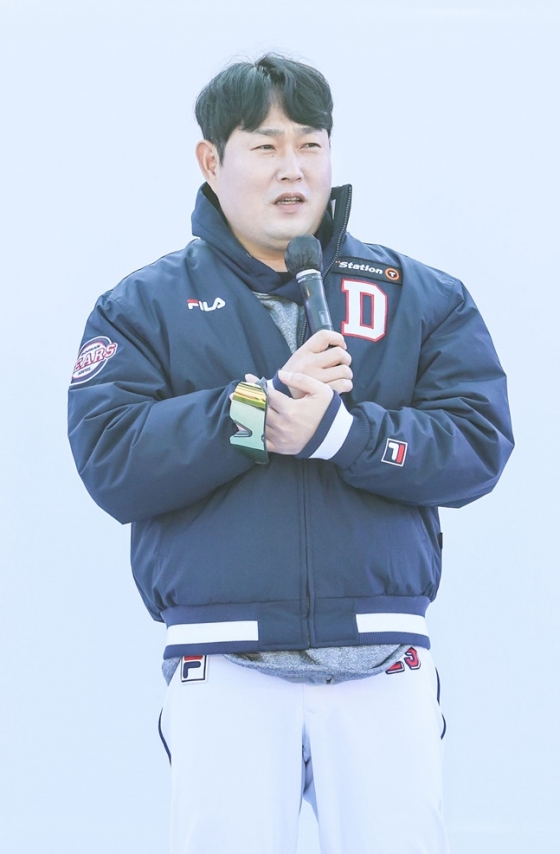 은퇴를 선언한 프랜차이즈 스타 김재호에 대해선 특별한 영상이 소개됐다. '원클럽맨 김재호'라는 제목과 함께 현역 시절 활약상을 담은 영상이 전광판을 통해 한참 동안 흘러나왔고 과거 우승 장면들도 상영됐다.
