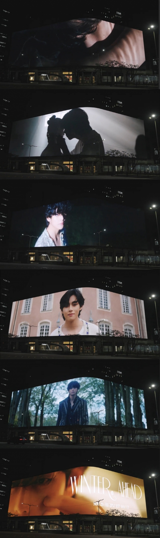 뷔의 신비로운 매력이 담긴 뮤직비디오 티저는 25일 오전 6시부터 신세계스퀘어에서도 상영돼 오가는 이들의 눈길을 사로잡고 있다. 신세계스퀘어는 신세계백화점 본점 외벽에 설치된 미디어파사드를 재정비한 초대형 디지털 사이니지다. 티저는 상영 직후부터 SNS에 인증샷이 줄지어 올라오는 등 큰 관심을 끌고 있다. "영화 같은 티저다", "감동적인 아름다움이다", "풀영상을 여기서 꼭 봐야한다" 등 글로벌 팬들의 감탄이 이어지는 중이다.