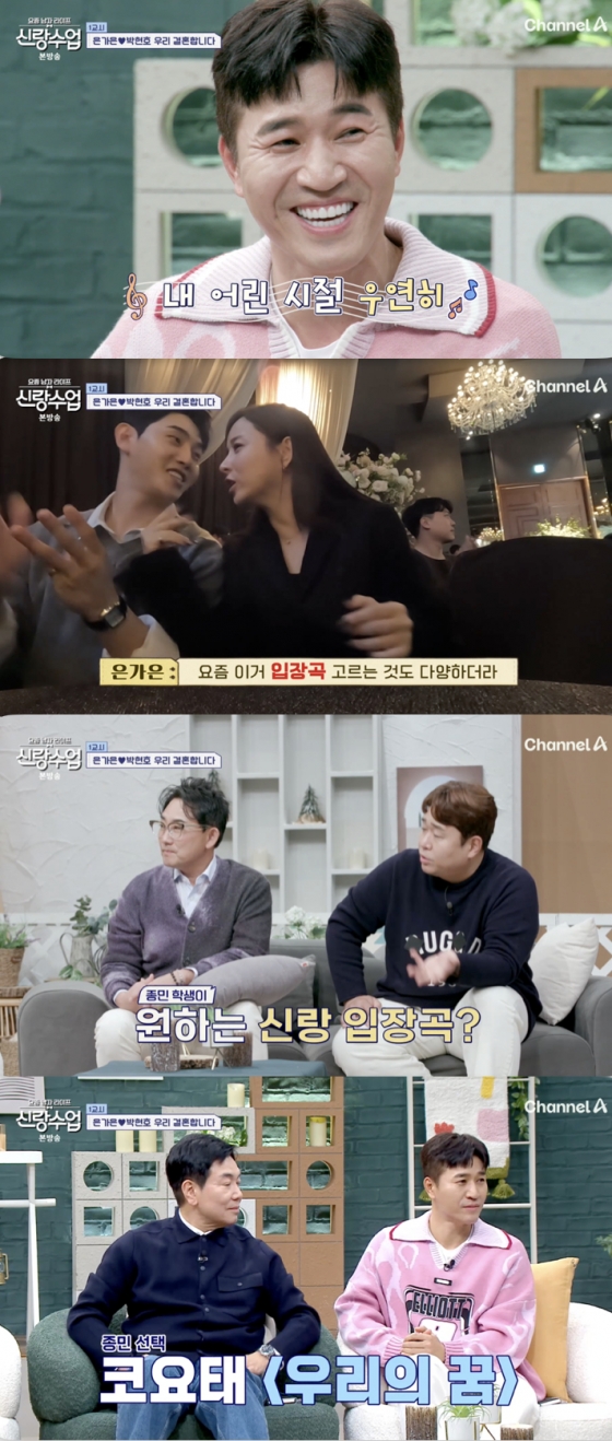 '요즘 남자 라이프 - 신랑 수업'에서 그룹 코요태 멤버 김종민이 본인의 결혼식 입장곡에 대해 언급했다.