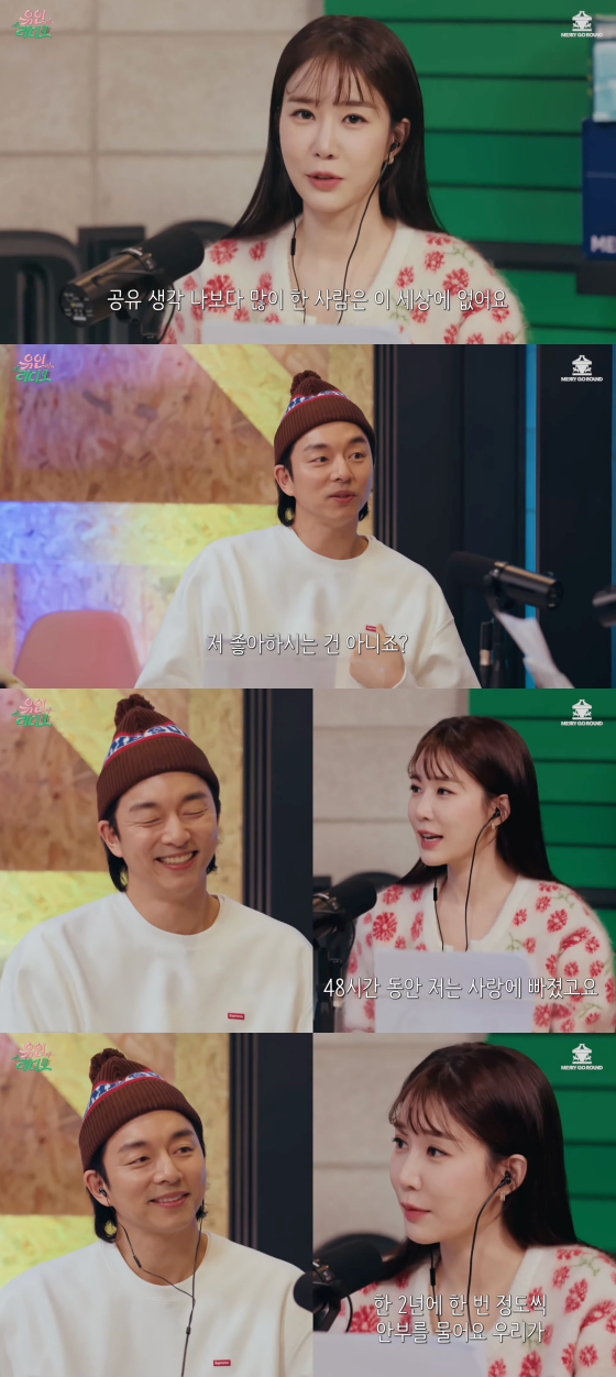 이어 "우리가 문자 메시지 나눈 걸 보니 2년에 한 번 정도 안부를 묻더라"고 털어놔 공유를 폭소케 했다.