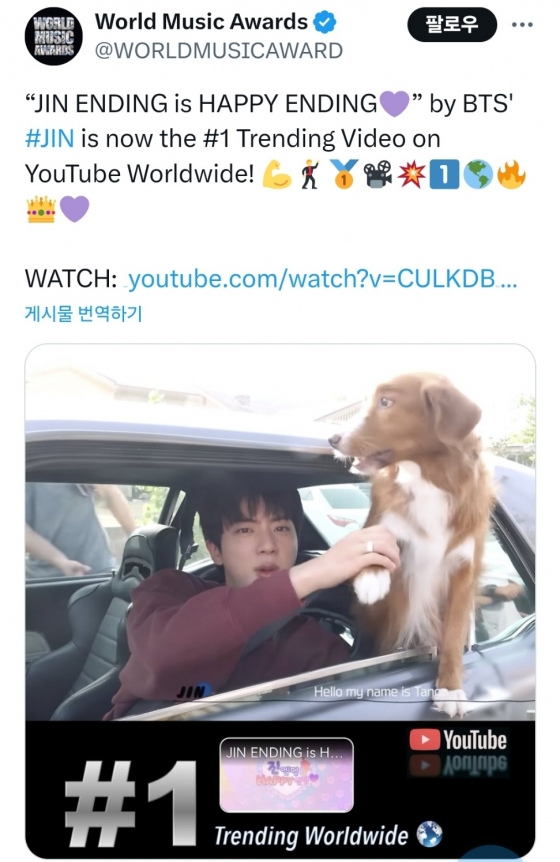 방탄소년단(BTS) 진이 뜨거운 팬사랑으로 만든 자체 콘텐츠 '진 엔딩은 HAPPY 엔딩'이 전 세계에서 폭발적인 인기를 보이고 있다.