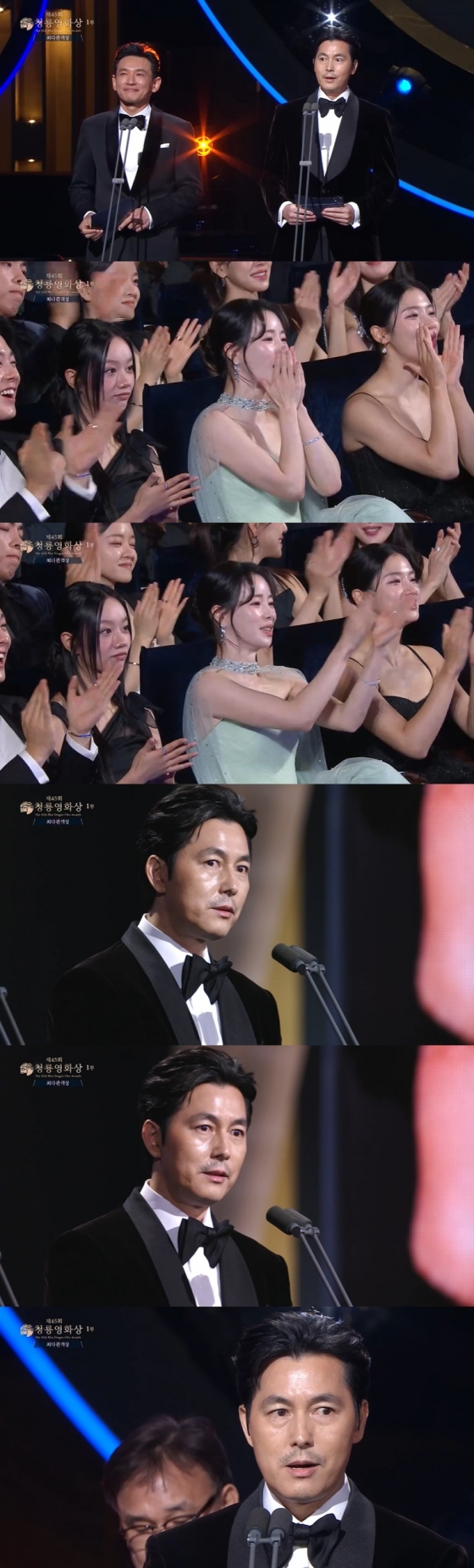 이날 정우성이 시상자로 등장한 순간, 배우들과 영화 관계자들은 그에게 환호와 박수를 보내며 시상식의 분위기를 끌고가려 했다. 배우 임지연, 고아성 등 정우성과 같은 아티스트컴퍼니 소속 배우들은 적극적으로 정우성에 환호하는 모습을 보였고, 박해준, 박주현 등 다른 소속 배우들도 그의 등장에 다소 놀라면서도 같은 '영화인'으로서 응원하는 제스처를 취했다.