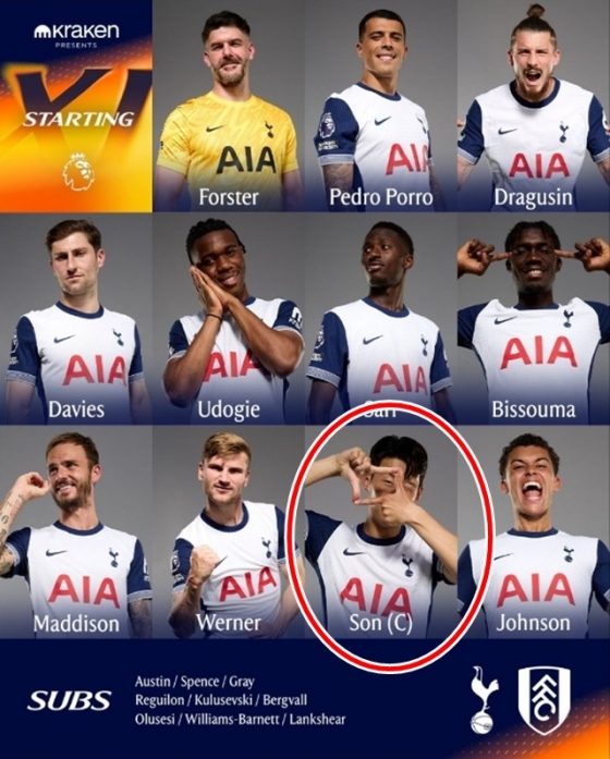 토트넘은 1일(한국시간) 영국 런던의 토트넘 홋스퍼 스타디움에서 풀럼과 2024~2025 잉글랜드 프리미어리그(EPL) 13라운드 홈 맞대결을 펼친다. 경기에 앞서 선발 명단이 발표됐다.