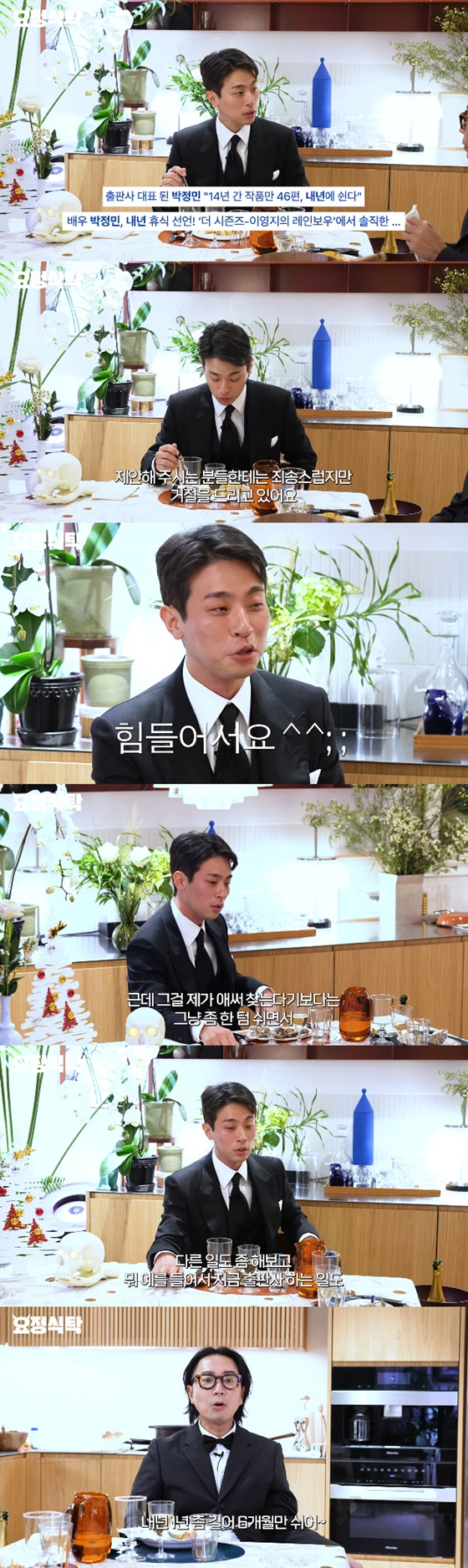 이를 들은 정재형이 "너무 바쁜 거 아니냐"고 묻자 박정민은 "그래서 내년에 쉬려고 여기저기 공식적으로 얘기하고 다니고 있다. 안 그러면 안 쉴까 봐"라고 말했다.