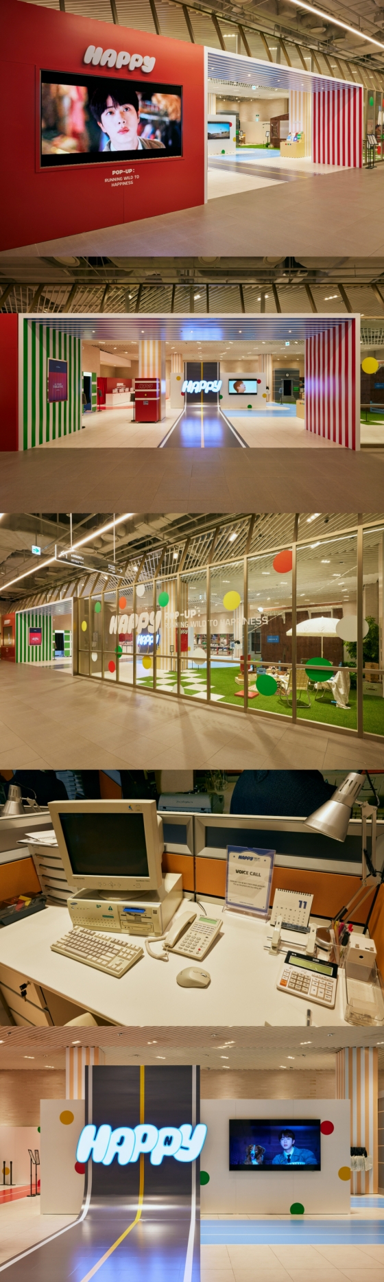 지난달 19일부터 서울 영등포구 '현대백화점 더현대 서울' 지하 1층 대행사장에서 진행된 이 팝업은 입구부터 진의 앨범 'Happy' 안으로 들어가는 분위기로 꾸며져 팬들의 큰 호응을 얻었다. 타이틀곡 'Running Wild' 뮤직비디오 속 장면을 떠올리게 하는 자동차 도로 그래픽이 팝업 바닥을 장식했다. 방문객은 이 도로를 따라 이동하며 전시를 경험하고 진이 전하는 '행복'을 찾는 여정에 동행했다.