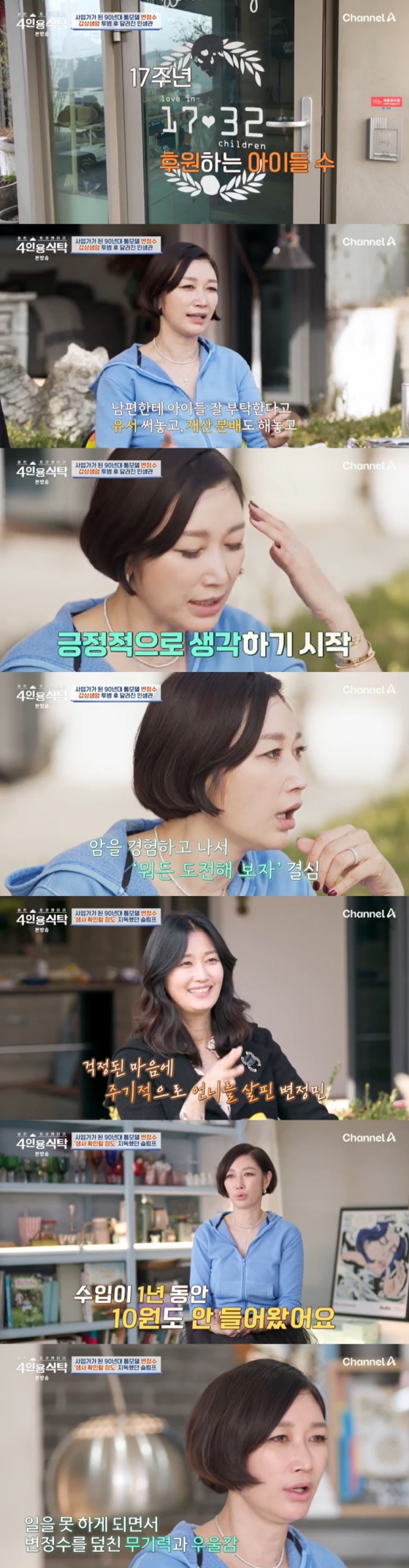 2일 방송된 채널A '절친 토큐멘터리 4인용식탁'(이하 '4인용 식탁')에서는 변정수가 윤현숙, 변정민, 홍석천을 초대해 이야기를 나눴다.