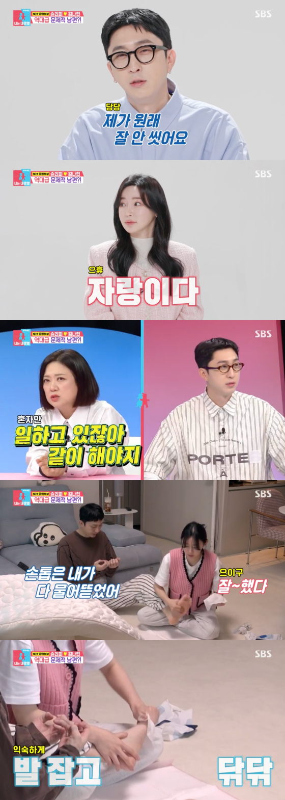 반면 슬리피는 "아내가 그런 걸 좋아하는 줄 알았다. 아내가 제 때 밀어주는 것도 좋아하고, 귀도 다 파줬다. 여태 발톱을 스스로 깎은 적이 없다. 결혼 전에는 발톱을 이로 물어 뜯었다"고 말했다.