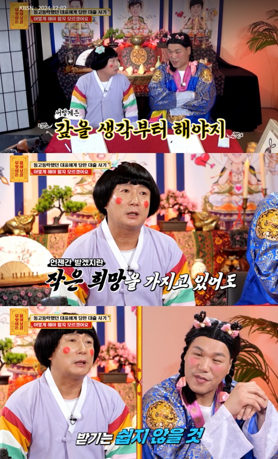 이를 들은 이수근은 "어떻게든 일 늘려서 벌어야 한다. '언젠가 받겠지'란 작은 희망을 품고 있어도 받는 사람은 없더라. 남 사기 친 놈이 돈 준다? 진짜 없는 거 같다"고 말했다. 이어 "결국 남의 눈에 눈물 나게 하는 사람이 제대로 된 삶을 살게 되겠냐"고 덧붙이기도 했다.