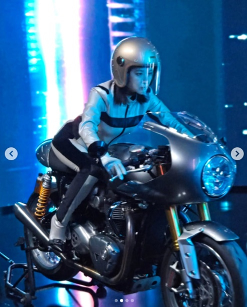 공개 된 사진 속 이영애는 사이버틱하게 꾸며진 세트에서 촬영에 임하고 있다. 반짝이는 조명 속, 쫄쫄이 의상을 입고 촬영 중이다. 핏 되는 옷을 입고 단발머리를 한 이영애는 30대로 돌아간 듯한 모습. 오토바이를 타고도 완벽한 몸매를 자랑하며 시선을 사로잡는다.