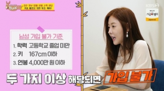 당시 방송에서 결혼정보회사 대표는 자신의 회원 가입 기준으로 학력, 키, 재력 등을 말하던 중 살찐 사람에게 "북쪽 위원장 닮은꼴"이라고 묘사했다. 또 이 대표는 탈모가 있는 사람에겐 "머리 밑이 너무 훤하다"고 말하는가 하면, "키 167cm 이하 불가", "연봉 4,000만 원 이하 가입 불가"등의 말을 했다.