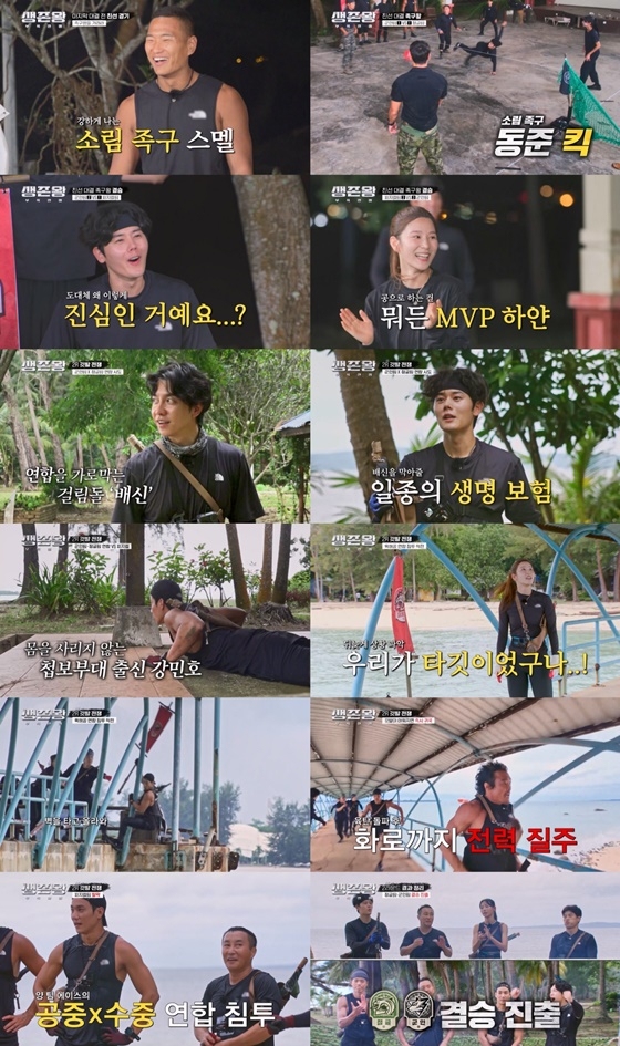 '생존왕 : 부족전쟁'(이하 '생존왕')에서 김병만의 '공중 작전'과 강민호의 '수중 작전' 연합에 '피지컬팀'이 완패했다. 결국 김병만의 '정글팀'과 이승기의 '군인팀'이 결승에 진출했다.