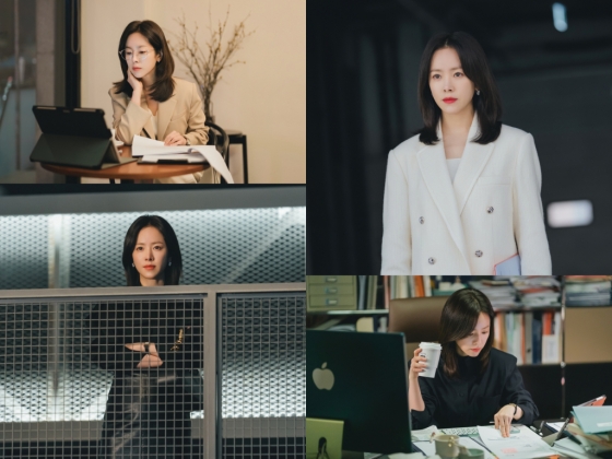 이와 관련 공개된 첫 스틸컷 속에는 요즘 가장 핫한 CEO 지윤의 '프로美'가 넘치는 일잘러 모먼트가 담겨 있다. 총명하게 빛나는 눈과 당당한 태도에서 나오는 자신감, 상대를 압도하는 카리스마에선 워너비 CEO의 프로페셔널함이 흘러 넘친다. 당장이라도 이직 의뢰를 맡기고 싶어지는 이유다. 그러나 이는 단순히 자신감에서만 비롯된 것은 아니다. 밤낮없이 후보자 리스트를 검토하는 등 일 밖에 모르고, 모든 일에 최선을 다하는 지윤의 워커홀릭 일상이 바탕이 된 것. 오늘도 전투적으로 일에 매진하는 지윤에 그녀의 '갓생'을 하루 빨리 만나보고 싶어진다.