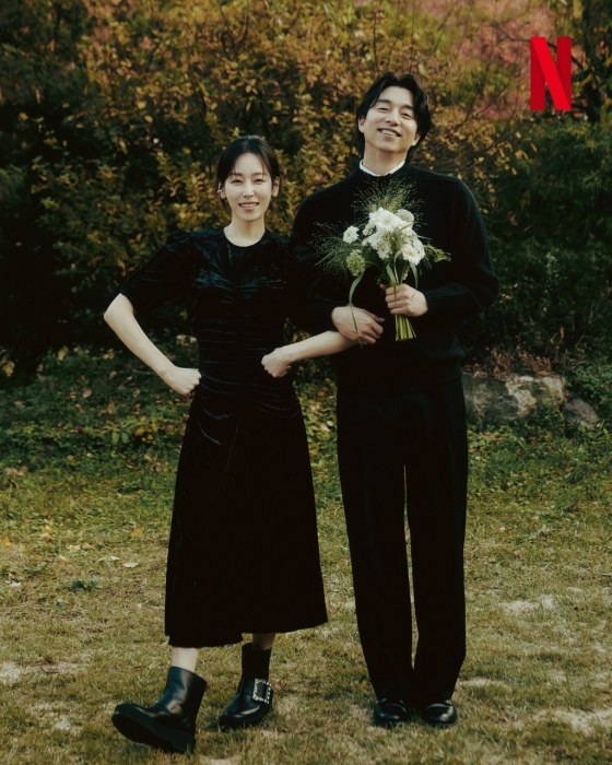 사진 속 공유, 서현진은 서로 햄버거를 나눠 먹으며 행복한 일상을 보내고 있는 모습. 두 사람은 올블랙 착장에 하얀색 부케를 들고 팔짱을 낀 채 환하게 웃고 있다. 한 편의 웨딩 화보를 연상케 하는 공유, 서현진의 사랑스러운 호흡이 눈길을 끈다.