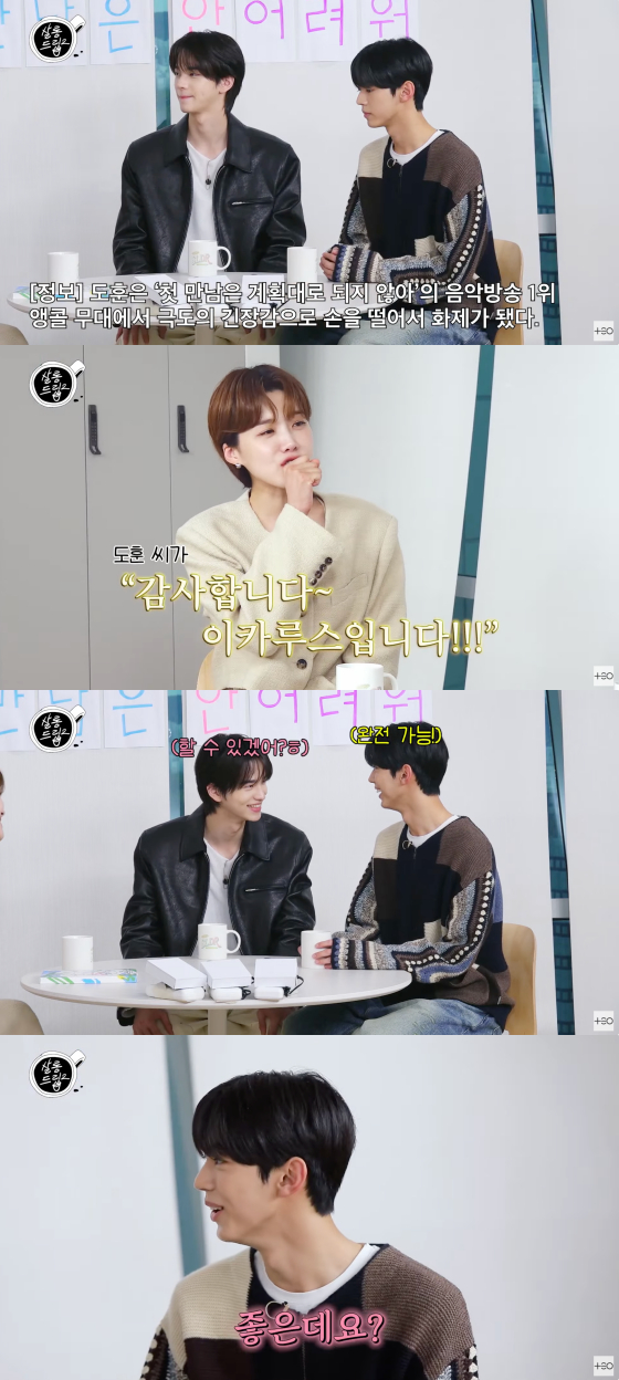 3일 웹 예능 '살롱드립2'에는 투어스 멤버 신유와 도훈이 게스트로 출연한 영상이 게재됐다.
