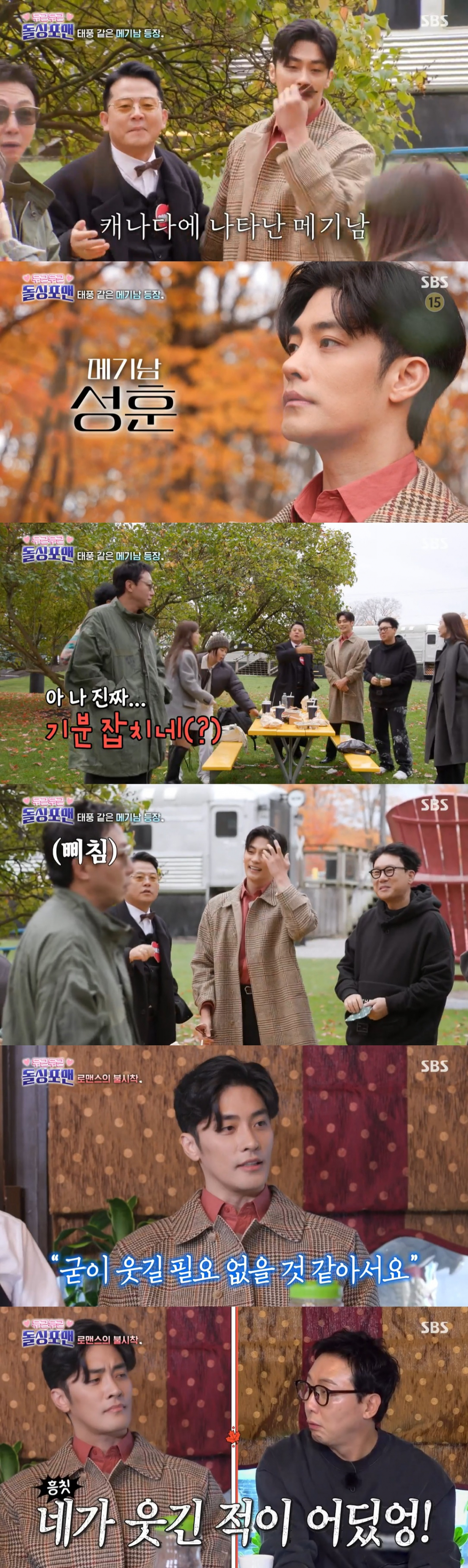 그러던 중 갑자기 '메기남'이 등장했다. 그 주인공은 바로 성훈. 이를 발견한 이상민은 "너 이런 식으로 나타나면 안 되지", 탁재훈은 "네가 웬일이야?", 김준호는 "메기남의 등장으로 다 미꾸라지가 됐다"라며 깜짝 놀랐다.