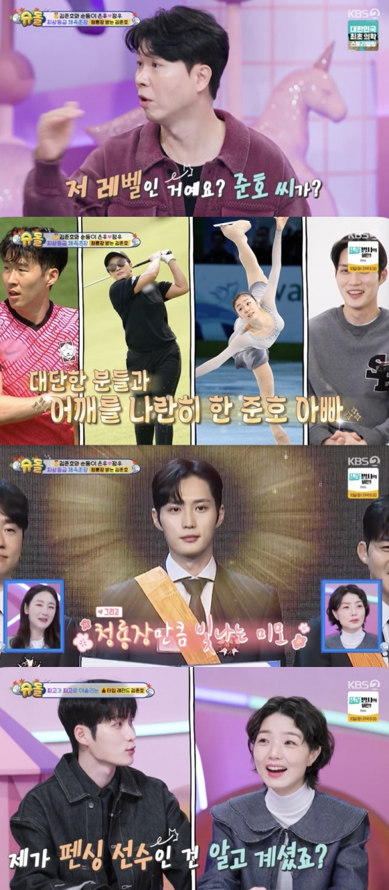 이에 김준호는 "4대 메이저 대회에서 모두 금메달을 획득해야 받을 수 있는 훈장이다"라며 "축구의 손흥민 선수, 피겨의 김연아 선수, 골프의 박세리 선수 같이 대단한 분들과 제가 어깨를 나란히 했다"라고 훈장의 명예로움을 자랑했다.