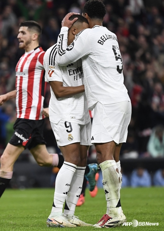 앞서 음바페가 리버풀전에서 PK를 놓쳐 비난이 쏟아지자 벨링엄이 음바페를 감싼 바 있다. 영국 '스카이 스포츠'에 따르면 그는 "음바페는 누구보다 훌륭한 선수다. 그만큼 그가 받는 압박감은 엄청나다. 경기에서 진 이유는 음바페가 PK를 놓쳐서가 아니다. 음바페는 고개를 들 필요가 있다"고 말했다. 하지만 이번에도 음바페가 PK를 놓쳤고, 벨링엄은 다시 음바페를 안아주며 위로했다.