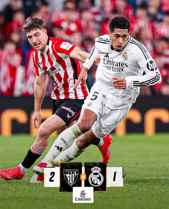 레알 마드리드는 5일 오전 5시(한국시간) 스페인 빌바오의 산 마메스에서 열린 '2024~25시즌 스페인 라리가' 19라운드 원정에서 아틀레틱 빌바오에 1-2로 패배했다.