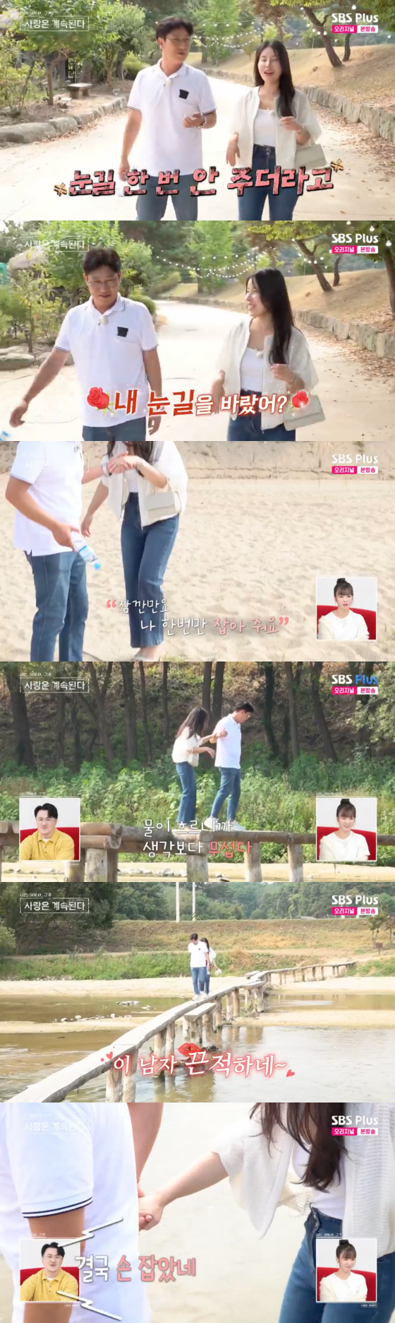 5일 방송된 ENA, SBS플러스 예능 프로그램 '나는 솔로, 그 후 사랑은 계속된다'에서는 10기 영숙과 미스터 백김이 손을 잡는 모습이 그려졌다.