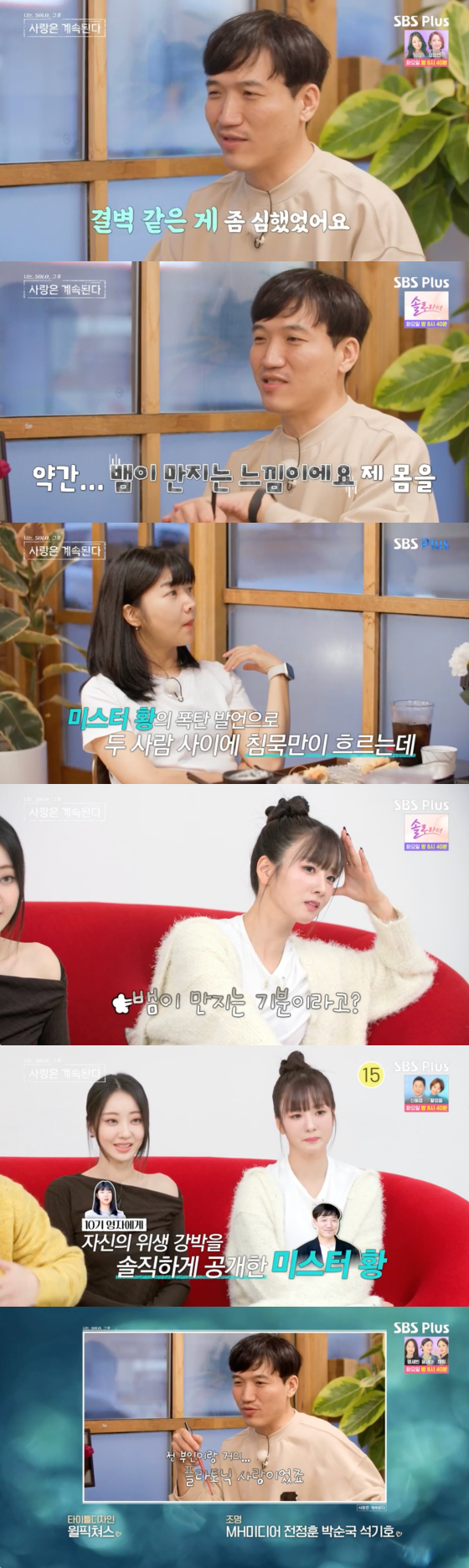촬영 내내 서로에 대한 호감을 표했던 두 사람의 분위기는 식당에서 무겁게 가라앉았다. 미스터 황이 결벽증을 고백했기 때문.