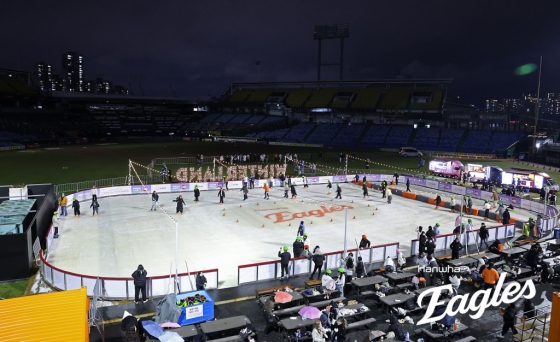 한화는 지난달 29일부터 3일까지 닷새 동안 한화생명 이글스파크 외야에 아이스링크를 설치해 팬들이 스케이트를 즐기며 추억을 쌓을 수 있는 '윈터랜드; 아듀! 이글스파크'를 진행했다.