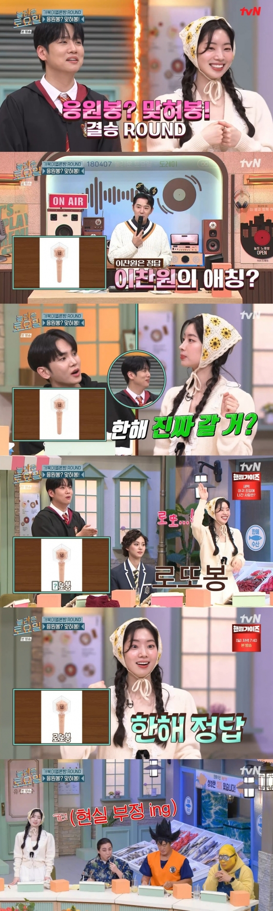 붐은 "O또봉이다. 행운을 주는 게 뭐냐"라며 결정적인 힌트를 건넸고, 결국 한해는 정답을 맞췄다.