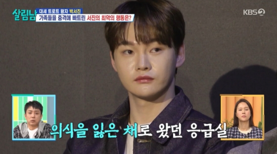 실제로 박서진은 의식을 잃은 채 응급실에 갔었다고. 박서진 아버지는 "집에 있는데 전화가 왔다. '서진이가 약을 먹었는데 병원으로 빨리 가보라'고 해서 대학 병원 응급실에 갔는데 세워놓으면 자빠지고. 애가 힘이 없었다"라고 이야기했다.