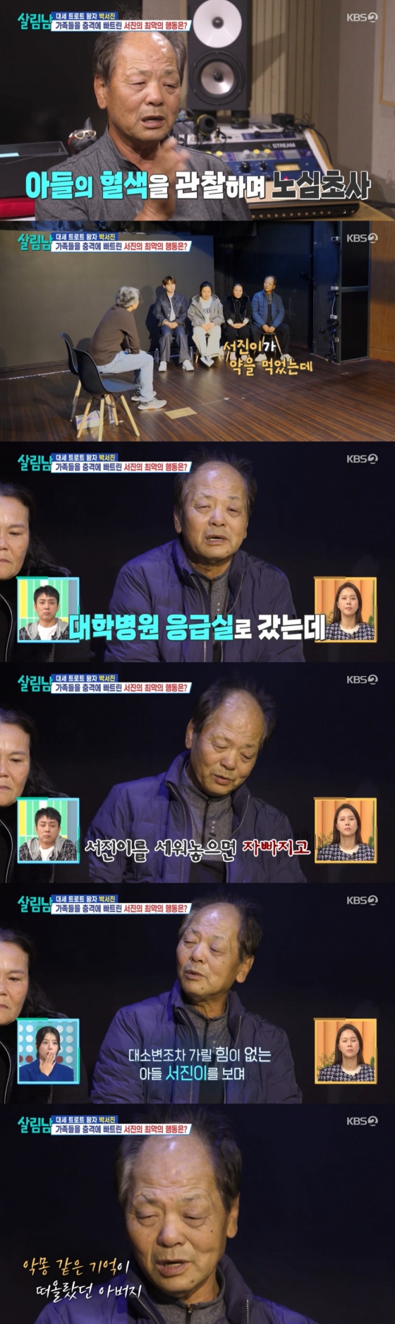 이날 박서진 가족은 전문가와 함께 심리 상담을 진행했다. 박서진 아버지는 "예전에 약을 한 번 먹었다. 두 아들을 먼저 보내고 서진이까지 보낼까봐"라며 박서진을 걱정했다.